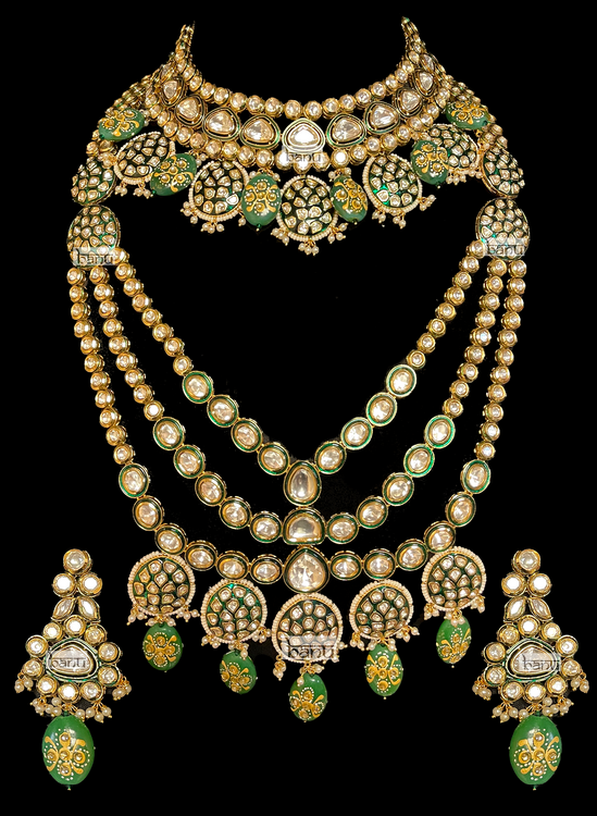 E. Exotic Stones on Kundan: Elevate your Kundan haar by incorporating exotic stones into the design. This combination is a favorite among millennial brides, offering a stunning and modern take on traditional Indian bridal jewelry.