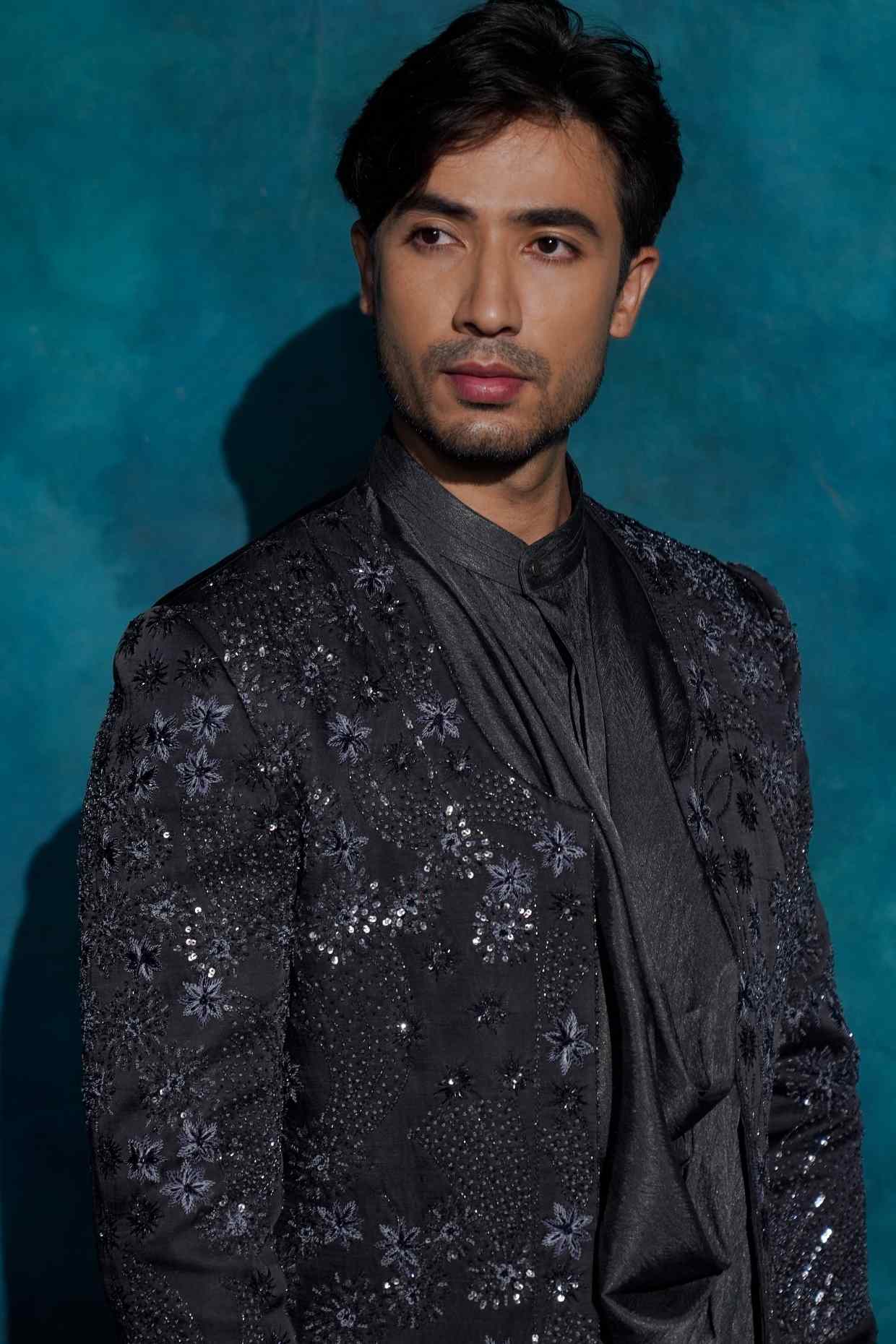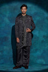 Charcoal Gray Hand Embroidered Contemporary Jacket Set | Jatin Malik