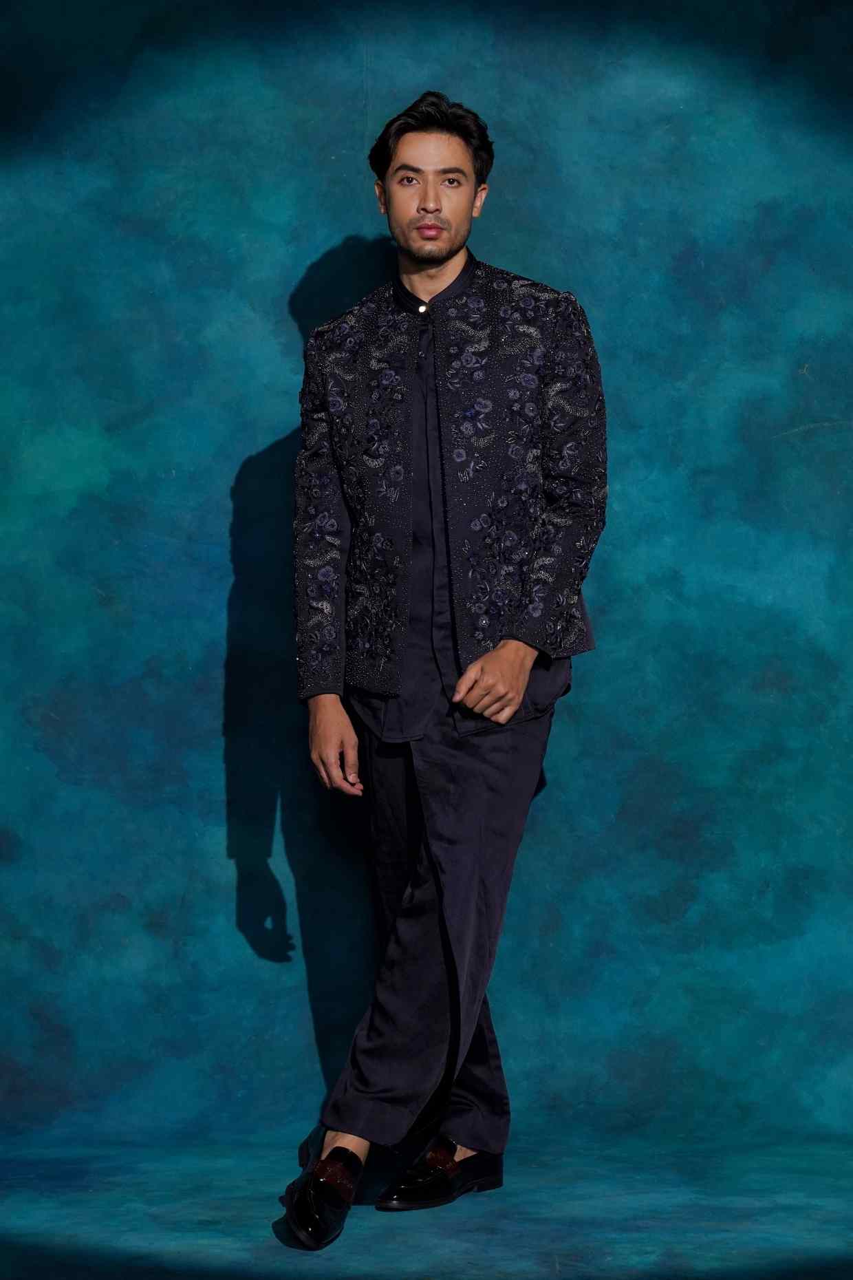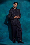 Midnight Blue Floral Embroidered Set | Jatin Malik