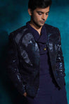 Midnight Blue Hand Embroidered Sequence Short Jacket Set | Jatin Malik