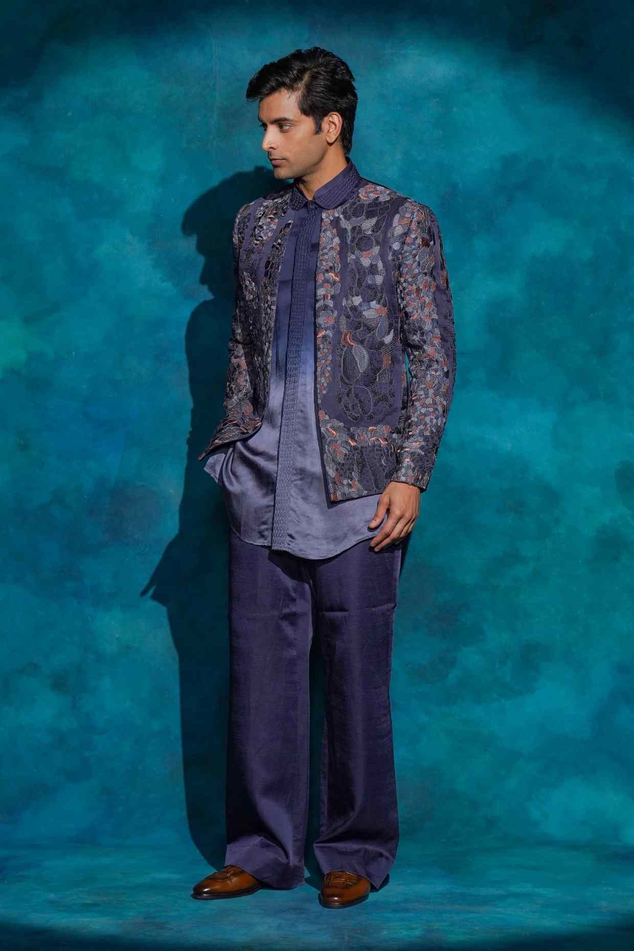 Oceanic Purple Hand Embroidered Short Jacket Set | Jatin Malik