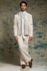 Apricot Ivory Hand Painted Blazer Set| Jatin Malik
