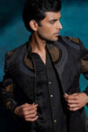 Black Hand Embroidered Open Bandhgala Set | Jatin Malik