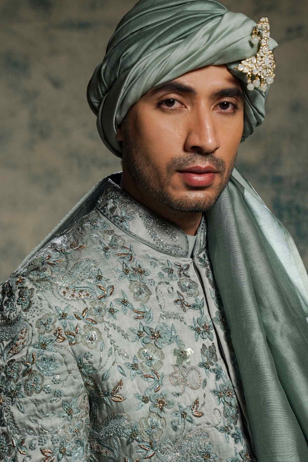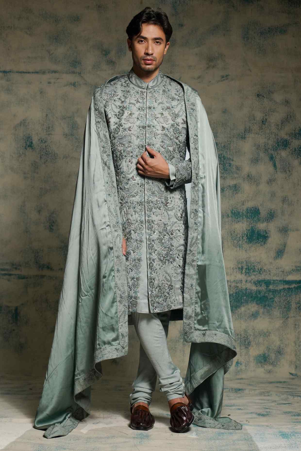 Chateau Gray Hand Embroidered Sherwani Set | Jatin Malik