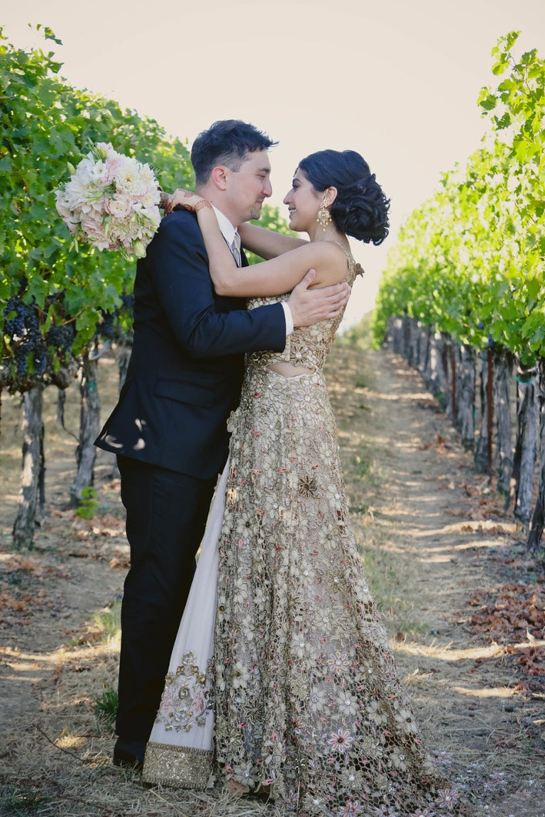 I was planning to wait until professional pictures came back, but can't help myself... Anu is so great to work with and her designer taste and expertise is amazing! My husband and I came in to see Anu's selection at the shop in early March. She was so sweet to let us just walk in after hours on a Friday night at like 8pm, that meant a lot to us. We were having a rush wedding in under 2 months, so we assumed we would only have time to buy outfits off the rack and not get anything custom made - but Anu made it happen! She worked so hard and got our outfits to us by mid-April!